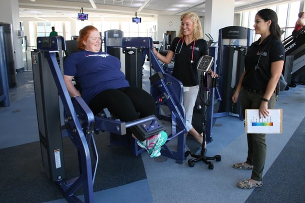A spacious facility that includes a 15,000 square-foot fitness floor, the Fitness Gym & Wellness Center houses over 100 pieces of cardio and strength equipment, a group fitness classroom, and a studio cycling room. We offer more than 50 group exercise classes in-person and virtually (included with membership) each week including yoga, Pilates, Zumba, H.I.I.T., cycling, and more! Our personal trainers work with clients to craft their perfect workout while exercise physiologists help clients manage chronic conditions through a personalized exercise regimen.
